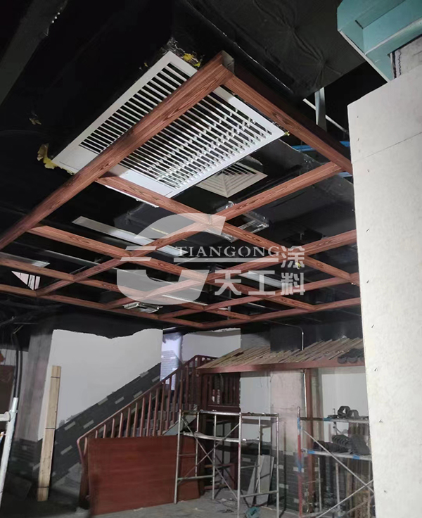 湖南益陽萬達廣場室內裝修鋼結構木紋漆