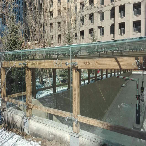 唐山建筑項目中車庫木紋漆效果,金屬鋼結構刷栗色木紋漆。